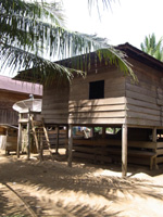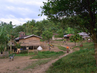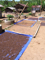 ようやくたどり着いた村で私が目にしたのは、木でできた伝統的な家々とその玄関先に日干しされているコーヒー豆や米、そして放し飼いをされている鶏やヤギといった風景でした。人と自然が共存するこの村では、この他にもゴム、ニラム、ピーナッツ、トウモロコシ、バナナなどが採れ、村人の日々の生活の糧や収入源となっています。