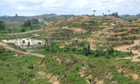 | 切り開かれ消えゆくボルネオ島内陸の熱帯林 (c)FoE Japan |