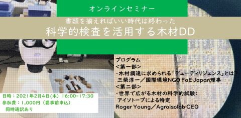 本セミナーでは、木材のリスク管理・その緩和措置を含むデューデリジェンス(DD)の実施方法と、木材の出処を特定するべく海外政府や企業の間で急速に広がっているアイソトープ(同位体)試験などの「科学的試験」を、海外ゲストを迎えて2回にわたって紹介します。 br>